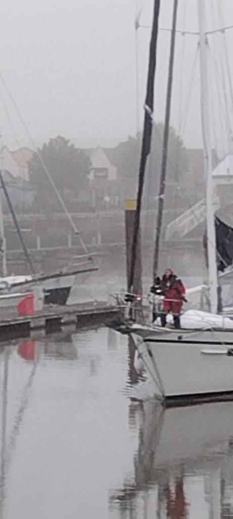 We settled between three marinas, all close (ish) together, we had our preferences and so had our family‘s so we ended up heading to Fleetwood. It looked ideal on google maps and from the almanac. Super market within walking distance, across the marina bridge and in the shopping mall, 6 miles to the train station, an hour 15 minutes to my parents. Our weather windows were now limited due to the time of year so we knew we wouldn‘t be able to be too picky. The skipper and I did our passage planning and then compared notes. We agreed we would have to leave in not the most ideal conditions (27 Nov 22). Leaving the Haven it was ‚lumpy‘ to say the least. One of the pilot vessels from the Haven actually came to check on us to see why the crazy yacht people were leaving and did they need help.