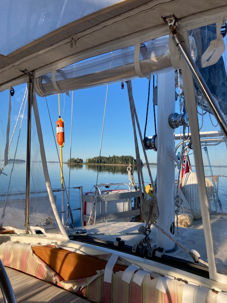 Do things ever go to plan when sailing? Probably not! The plan had been to leave our slip at Severn Yatching Center mid July, sailing up the east coast stopping at New York and then Boston. Well surprise, surprise, that didn’t happen. Why I hear you ask, well let me tell you gentle reader (too much Bridgerton I hear you cry). We had a minor drama with our stay sail, the bottom line being you can’t repair a dead sail. The fabric was just too far gone and a replacement was needed. For any of you sailors reading this you will know that getting a new sail at this time of year quickly is like hunting unicorns. You know they are out there but you just can’t get one quickly. I was getting quotes of 6 to 8 ⎌months for a new sail and when you have to leave in 6 to 8 weeks that just wasn’t going to fly. As you do, I put out a message asking for advice on the FB Irwin sail page for advice as the fab Bacon sails in Annapolis were not able to help. I was put on to a new sail loft ‘Black Dog Sail Loft’ and the very helpful Sebastian not only turned a sail around in 6 weeks but also offered advice on other canvas repairs I was completing. We navigated the different sewing terms from UK to USA and a new sail was produced and delivered.