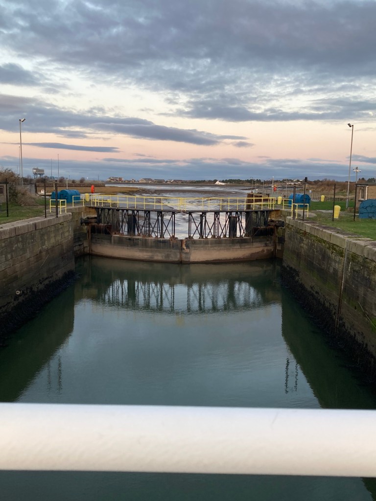 Like many Marinas with locks, you can only enter at certain states and for Fleetwood this is 1 1/2 hours either side of High Water (HW). We knew we would be arriving in the early hours and we had no desire to enter at the high water window in the dark so after clearing Anglesey we decided to slow down. We arrived at the channel outside Fleetwood at 5am, dropped the anchor to wait for 1pm, the start of the next High Water window.